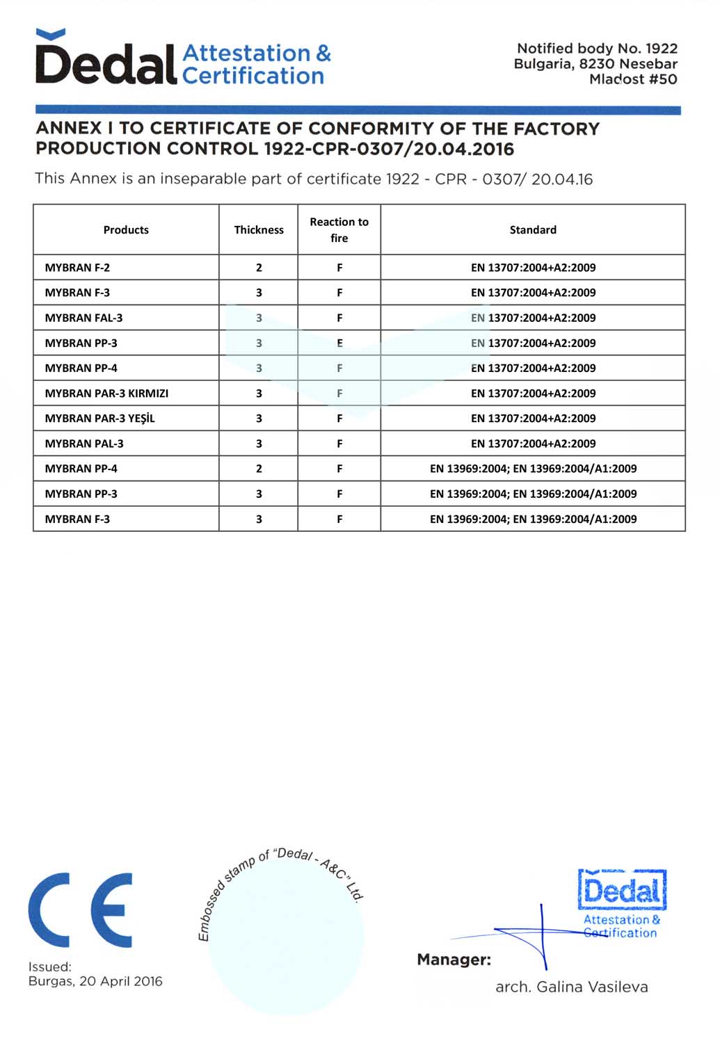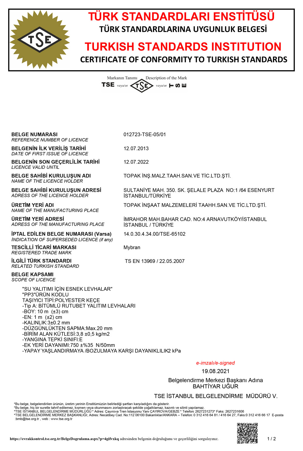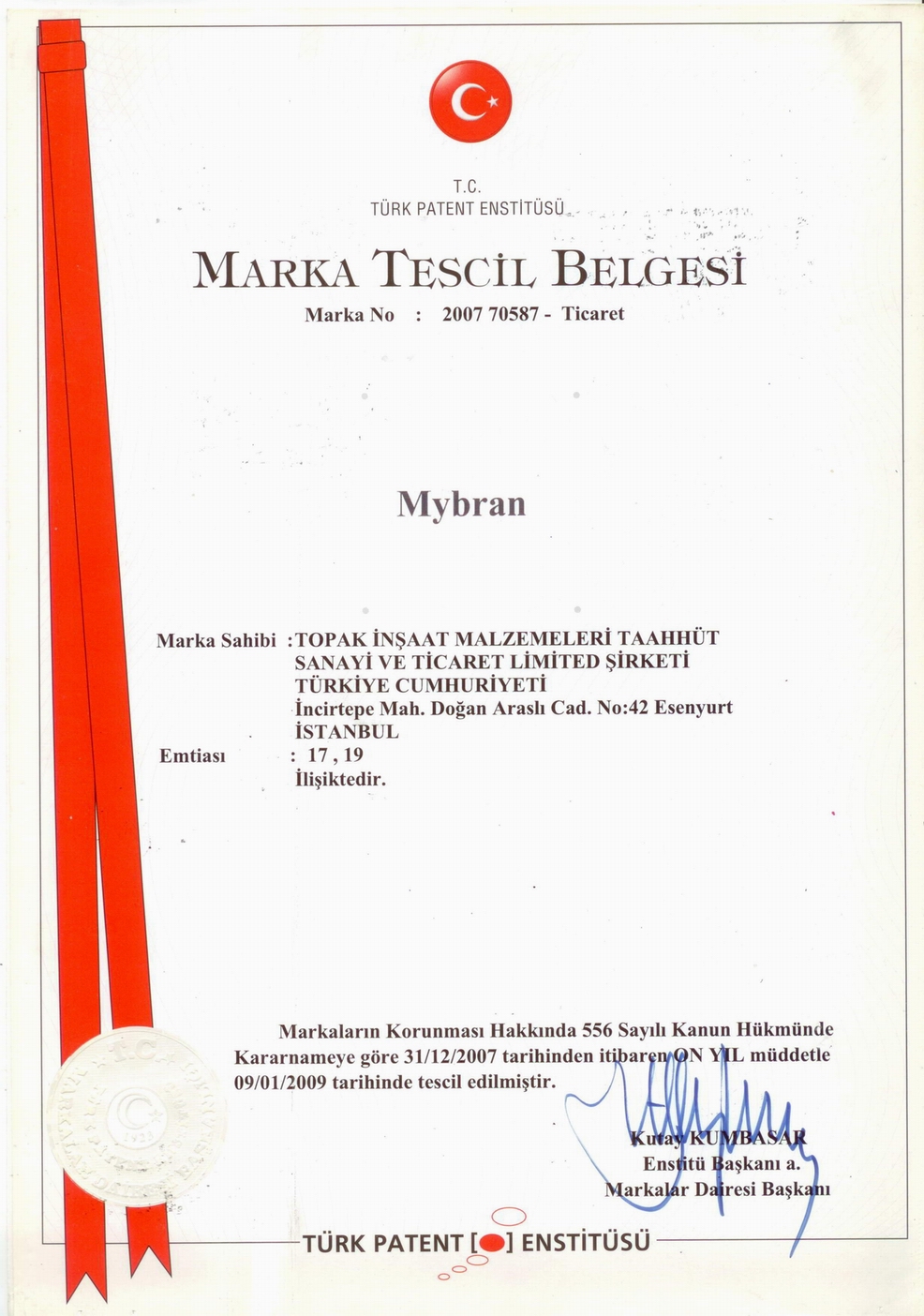 MYBRAN bitümlü su yalıtım membranı üretmiş olduğu membran grubunda kalite anlayışı yolunda çizgisini bozmadan yoluna devam ediyor. Bu istikrarlı sürüşünü de kalite belgeleri ile tescilleyerek günden güne büyümeye devam ediyor. MYBRAN membran, gerek üretim aşamasında gerekse satış ve sonrası hizmetlerinde tüm kalite standartlarını uygulayarak hizmet veriyor. Bu kapsamda ulusal ve uluslararası geçerliliği olan tüm sertifikasyonunu tamamlayarak tescilli bir marka olmanın tüm gereklerini yerine getiriyor.