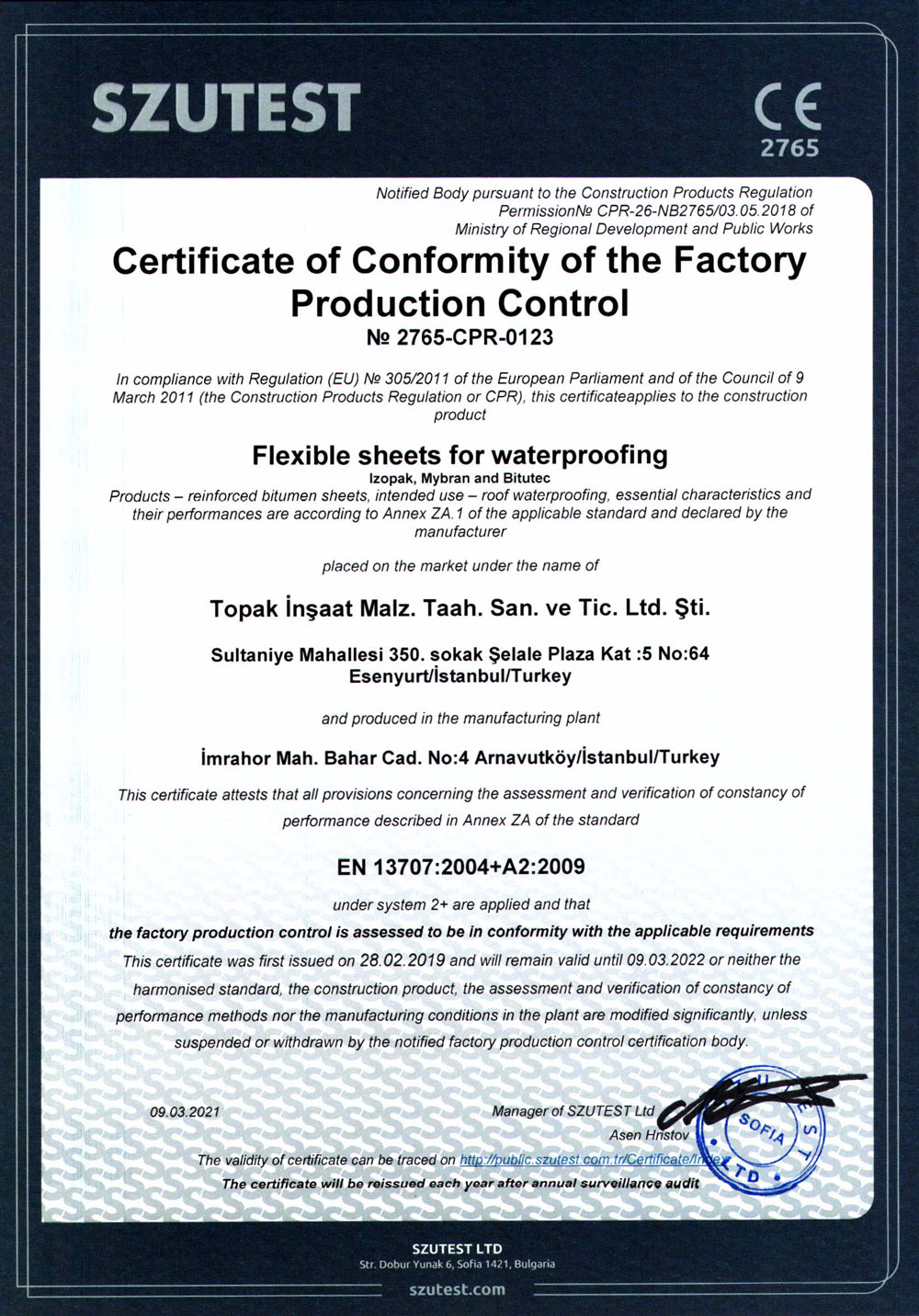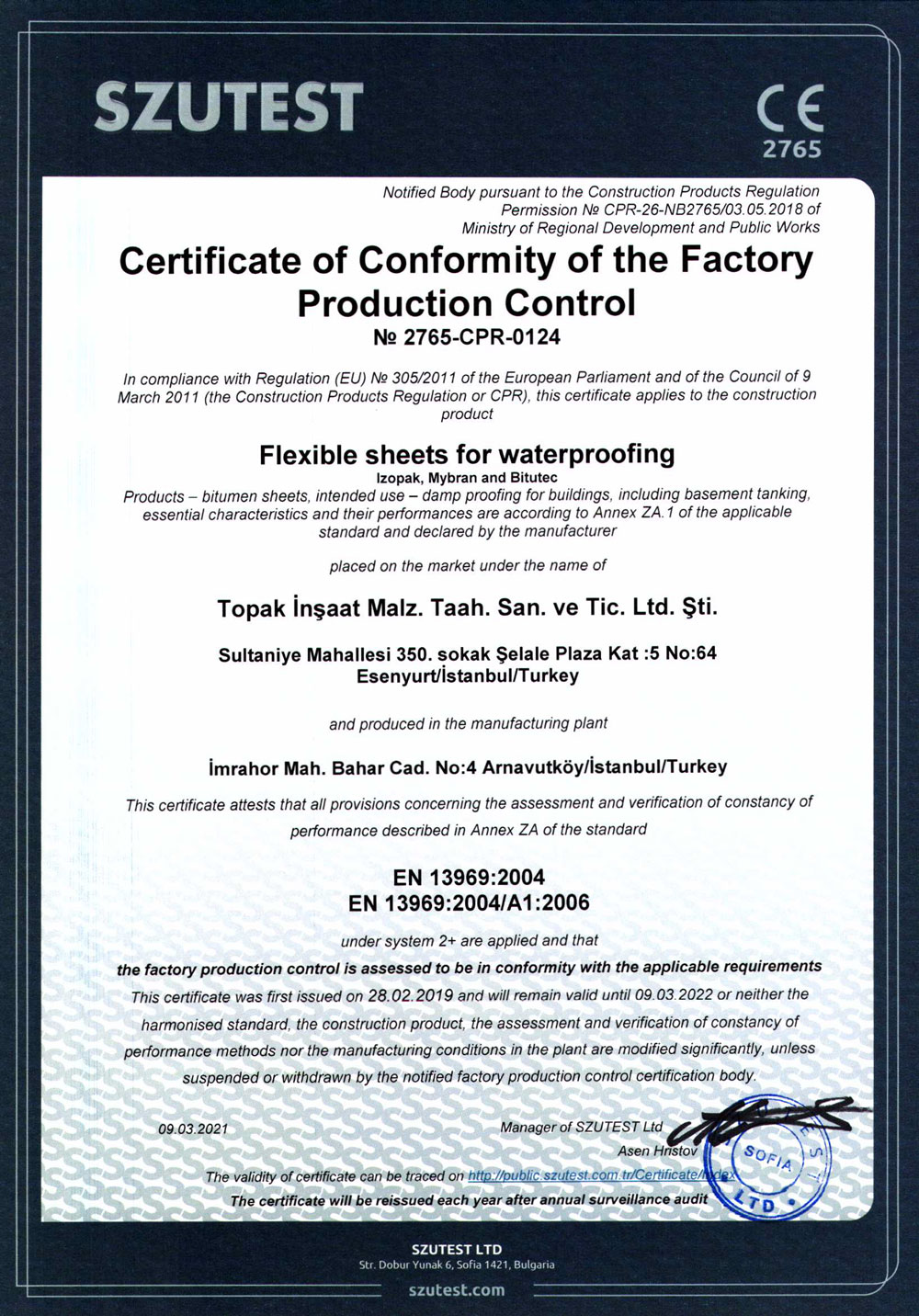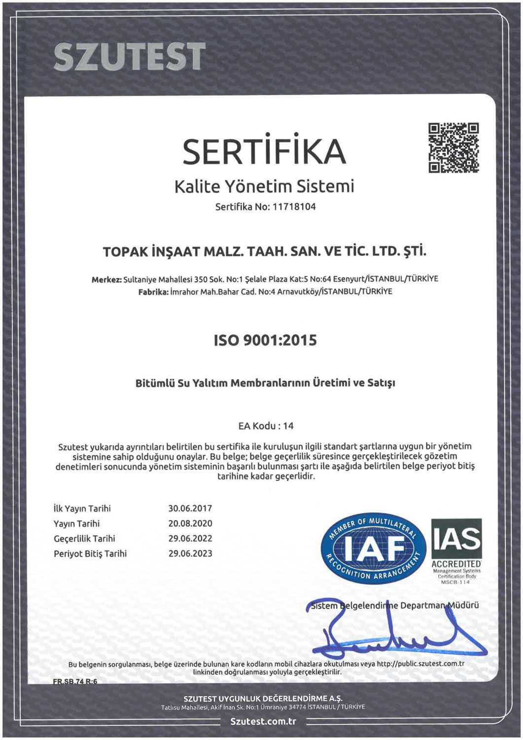 MYBRAN bitümlü su yalıtım membranı üretmiş olduğu membran grubunda kalite anlayışı yolunda çizgisini bozmadan yoluna devam ediyor. Bu istikrarlı sürüşünü de kalite belgeleri ile tescilleyerek günden güne büyümeye devam ediyor. MYBRAN membran, gerek üretim aşamasında gerekse satış ve sonrası hizmetlerinde tüm kalite standartlarını uygulayarak hizmet veriyor. Bu kapsamda ulusal ve uluslararası geçerliliği olan tüm sertifikasyonunu tamamlayarak tescilli bir marka olmanın tüm gereklerini yerine getiriyor.