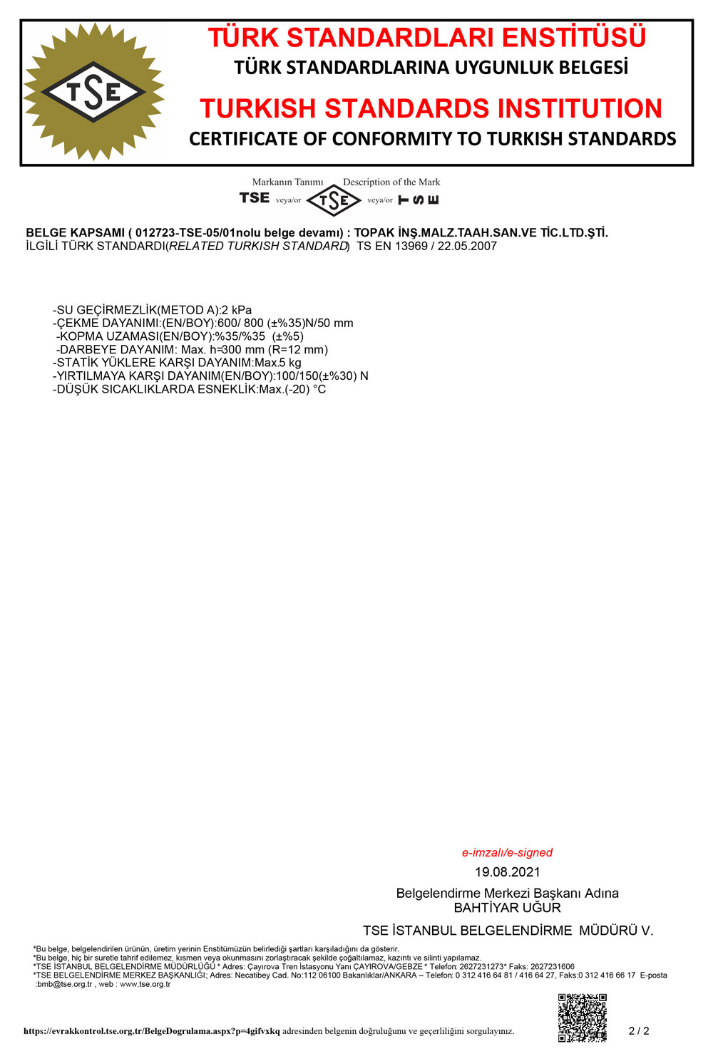 TSE Sertifikalarımız