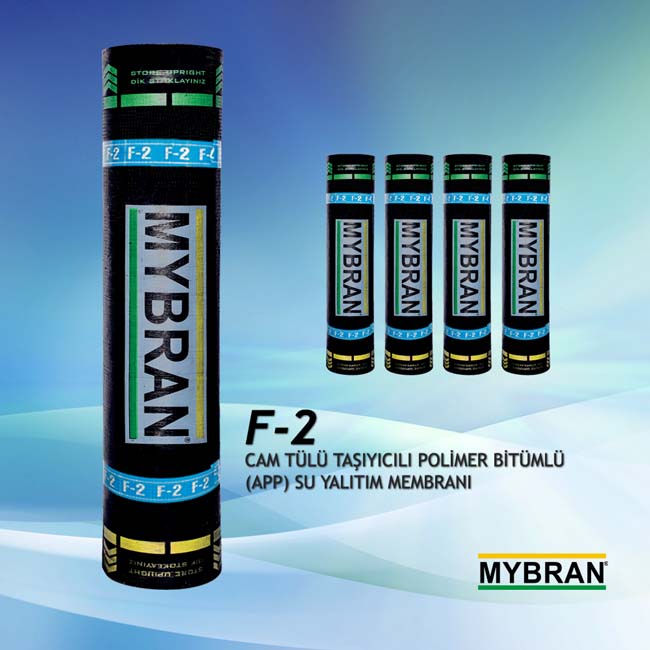 F-2 bitümlü su yalıtım membranları fibrocam tel takviyeli camtülü taşıyıcılı, APP (Atactic Polypropylene) katkılı,her iki yüzü polietilen film kaplamalı olup taşıyıcının bitüm asfalt ile doyurulması sonucu elde edilir. F-2 Fibrocamlı su yalıtım membranı genel olarak çatılarda, pergule ve su yalıtım izolasyonu gerektiren yalıtım noktalarında kullanır.