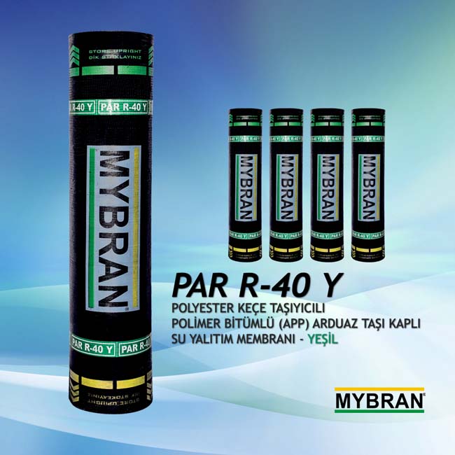 PAR-40K Arduaz taşı kaplı polyester keçeli bitümlü su yalıtım membranı , polyester keçenin APP (Atactic Polypropylene) katkılı bitum penetrasyon asfaltın kaplanması ile elde edilir. Bir yüzü polietilen film kaplama diğer yüz arduaz mineral taş ile kaplanan polyester keçeli membran son işlem ile elde edilir. PAR-40Y arduazlı membran polyester keçeli su yalıtım membranı genel olarak çatılarda, pergule ve su yalıtım izolasyonu gerektiren yalıtım noktalarında kullanır.